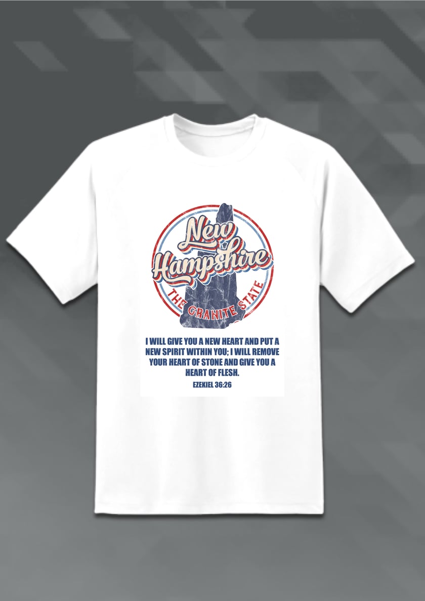 The New Hampshire State shirt offers a hope-filled Scriptural word of a new spirit coming to this state. Wear it as a prophetic ministry opportunity this beautiful place.